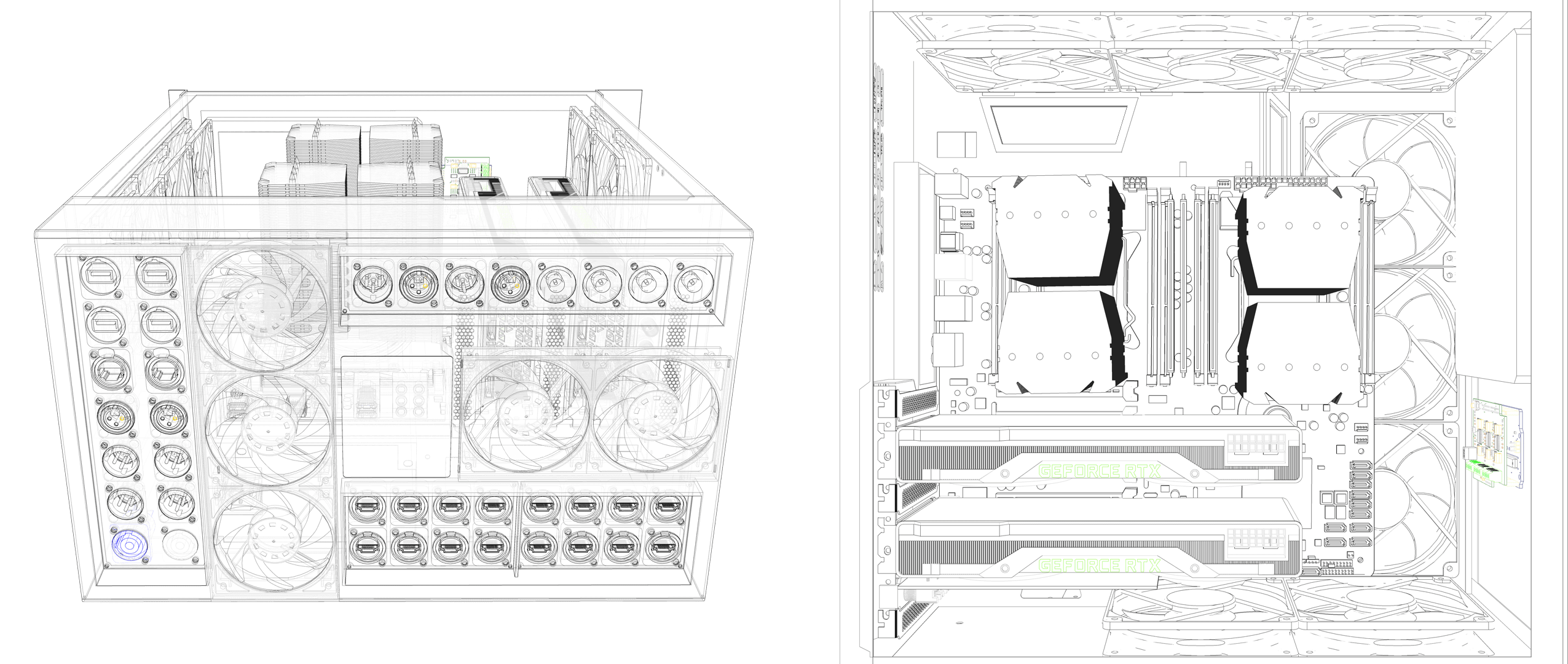 The power of TouchDesigner in technical design gives unlimited flexibility in creating custom AV systems, generative content, live data visualizations, interactive installations, and synchronized audio, lighting and video control.
