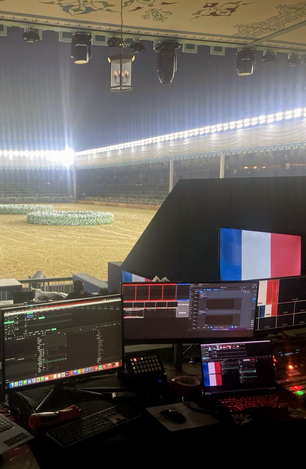 All FOH equipment and media servers are ready for timecode showrun, live broadcast and realtime graphic content.3D projection mappingSetup designWe produce realtime video content with TouchDesigner and Notch software. Stereo and infrared cameras data activate 3D graphic in different ways.This experience makes people happytimecode playback